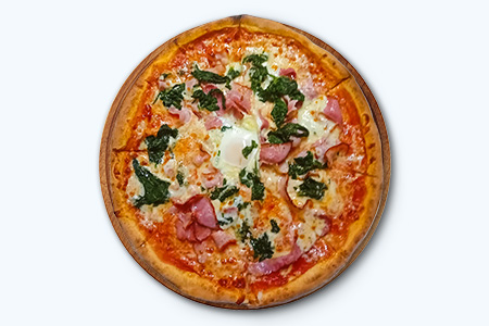 Drcená rajčata, mozzarella, slanina, česnek, špenát, vejce